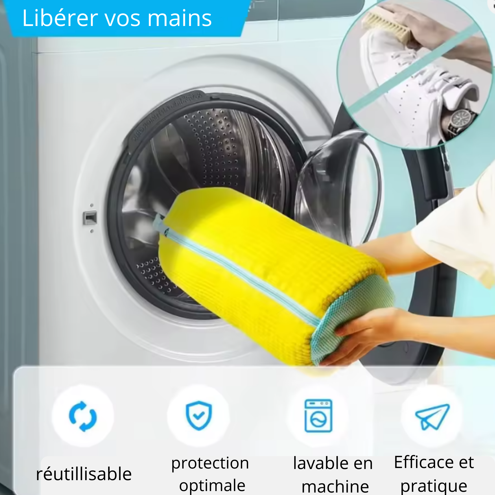 Découvrez la housse magique en microfibre ultra-absorbante et respirante. Elle protège, nettoie et garde vos chaussures comme neuves
